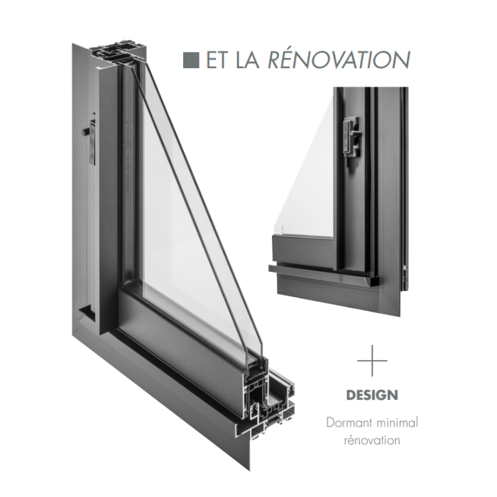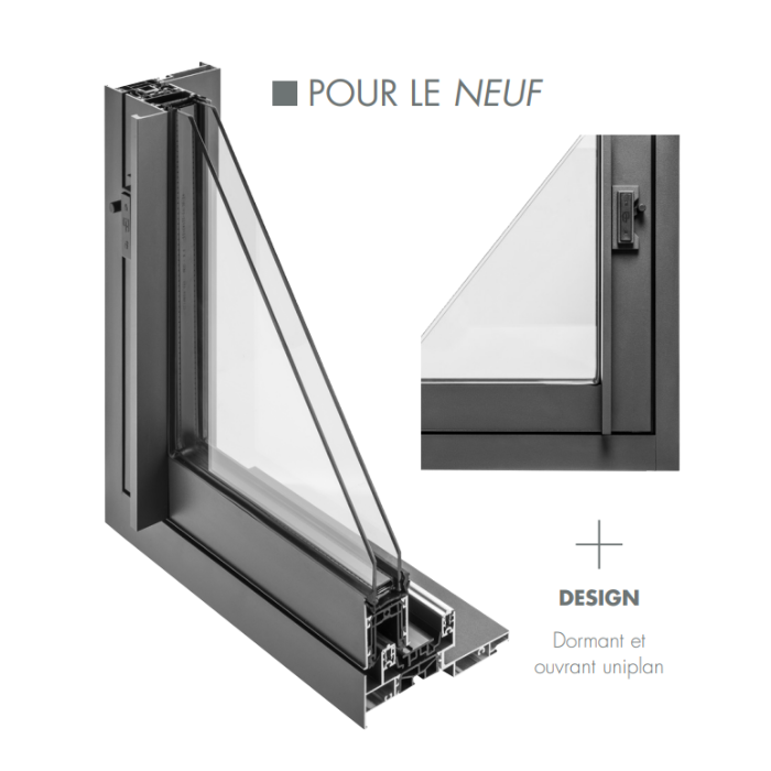 Idéal en neuf comme en rénovation, le design épuré se distingue par des profilés fins et des détails soignés :