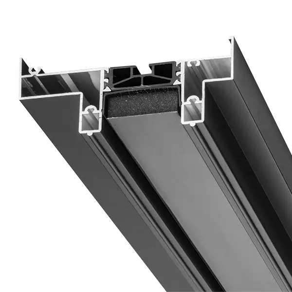 Un système intégré dans la traverse haute combine une mousse isolante à mémoire de forme et un profil en U PVC pour une mise en œuvre simplifiée et un confort renforcé.